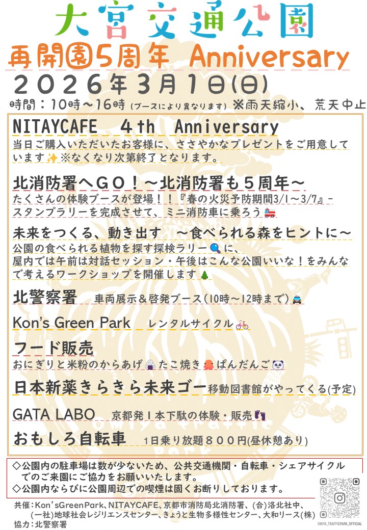 共催:Kon’sGreenPark、NITAYCAFE、京都市消防局北消防署、 (合)洛北社中、