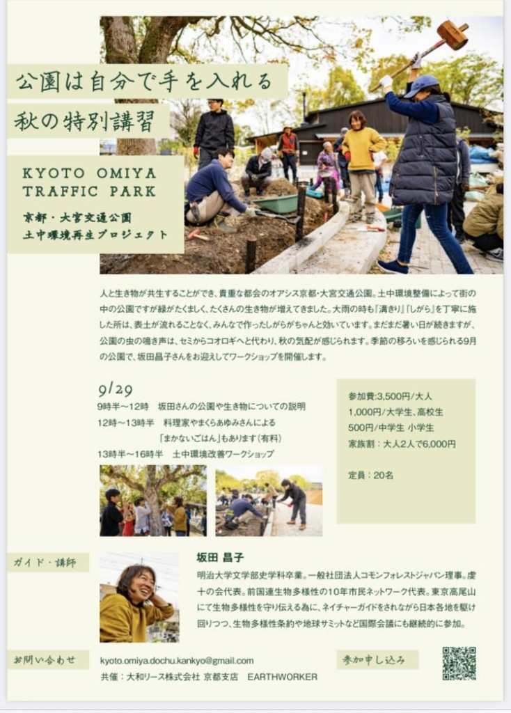 『公園は自分で手を入れる』を合言葉に人と生き物が共存する公園づくりに参加しませんか?特別講師をお迎えして、ワークショップを開催いたします。 2023年9月29日(金) 9:30~17:00ごろまで〇プログラム予定〇09:30~12:00 坂田さんの公園や生... -